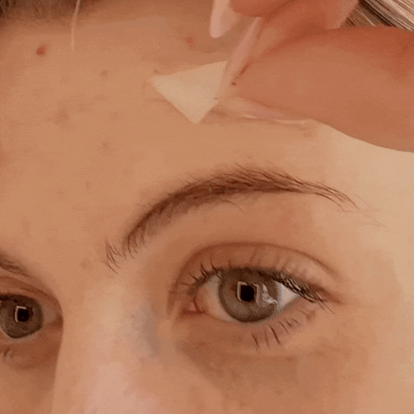 - Şeffaf arka filmi nazikçe çıkarın ve bandı doğrudan sivilcenin üzerine yapıştırın.