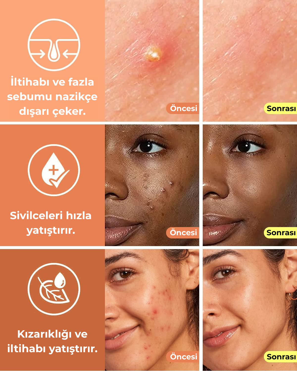 - Sivilcenin iltihabını ve fazla sebumu nazikçe emer, kızarıklığı azaltır ve iyileşme sürecini hızlandırır.